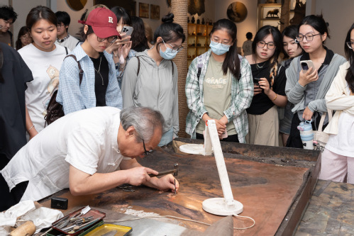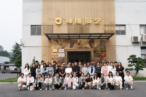 本次产业游活动由浙江永康五金生产力促进中心承办,师生调研永康五金产业需求与产学合作模式,为专业学习锚定产业方向。上午师生们前往金华市神雕雕塑工艺有限公司,先后参观铜艺术馆、大师创作室及铜文创园,近距离感受铜雕技艺的匠心魅力,并与大师进行心得交流,探索非遗文化与现代设计的融合创新。