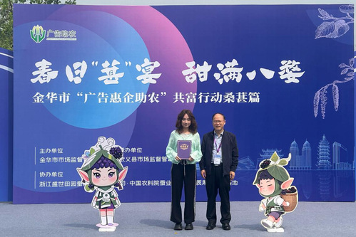 4月28日上午,由金华市场监督管理局主办的春日葚宴 甜满八婺广告惠企助农共富行动,在浙江盛世田园蚕桑发展有限公司成功举办。活动现场,由设计学院数字媒体艺术设计专业何乐为、盛萍两位教师指导,马熙悦同学创作的小葚儿IP形象斩获全场大奖,并获选为桑葚园官方IP。