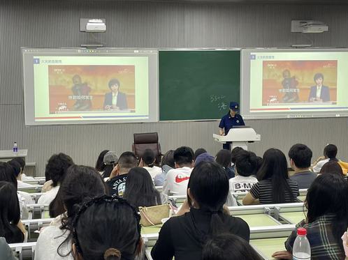 随后,西关派出所民警盛诗雨为同学们带来防范电信网络诈骗专题讲座。盛诗雨从当前高校发案率较高的诈骗类型入手,详细剖析了兼职刷单、虚假票务、游戏交易、冒充客服及“婚恋”交友等典型骗局,通过真实案例解读诈骗分子作案手法和心理操控过程。并在宣讲最后提醒同学们务必做到“不轻信、不透露、不转账”,牢记“六不三问”原则,对陌生信息保持警惕。