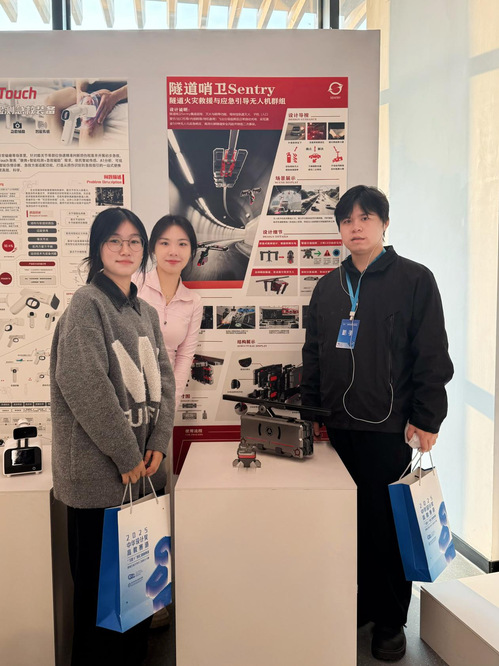 主题赛道高职组共有216件作品参赛,仅34入围决赛。我校设计学院4件作品、智能制造学院3件共7件作品入围决赛最终4项荣获一等奖由设计学院邵恩雨、吴瑕、唐闻老师指导,杜畅畅、陈瑶瑶、韩佳璐同学完成的《多模态勘测与矿难预警救援装备》;邵恩雨、吴瑕、张文龙老师指导,徐一如、谢宇轩同学完成的《护悉动能双愈护膝》吴瑕、邵恩雨、詹秀丽老师指导,钟瑶瑶、曹丽娜、张竣翔同学完成的《O2—高海拔地区便携式制氧机共享基站》均获得一等奖,成绩斐然。此外,邵恩雨、吴瑕、金德才老师指导,高梦雨、毛晓雯、汪弘杰同学完成的《隧道哨卫隧道火灾救援与应急引导无人机群组》,荣获二等奖。
