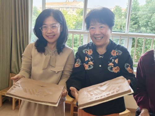 本次活动的亮点之一是将婺州窑陶艺与教育传承巧妙结合。退休老教师在陶土上印下的“红心印记”,不仅是对教育初心的坚守,也是对非物质文化遗产的亲身传承,更是我院以非遗技艺为载体,践行尊老爱幼美德的生动实践。