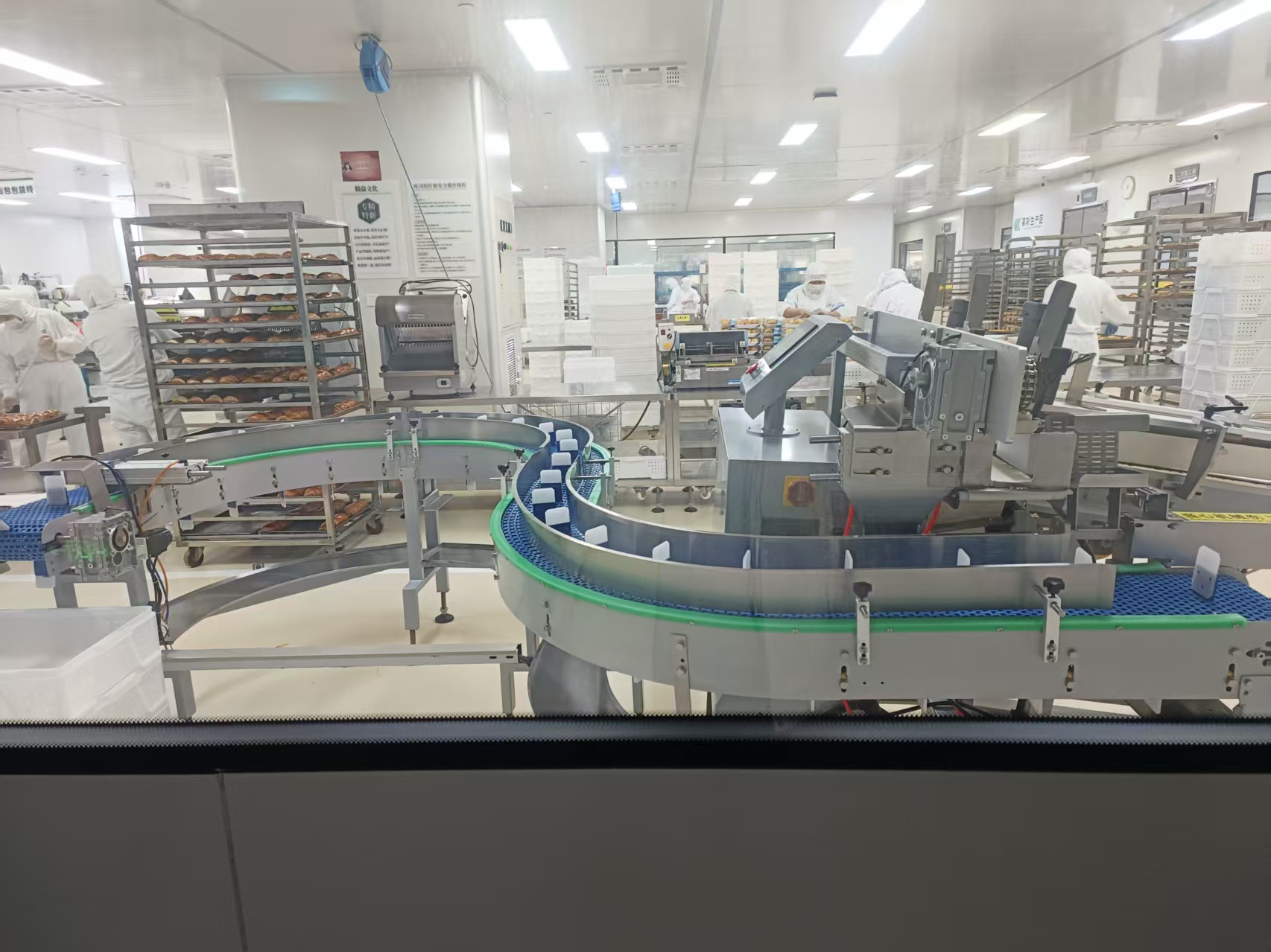 活动当天,秋高气爽,阳光正好。老师们满怀期待地走进小镇特色的透明工厂,透过全透明玻璃窗,清晰观摩了蛋糕、饼干和面包等食品从原料加工到成品包装的全流程。干净整洁的生产环境、标准化的操作规范,让教职工们直观感受了什么是“透明化生产”。