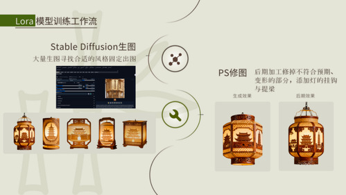 由方涵雨、徐梦瑶团队创作的作品《竹艺》斩获一等奖。该作品紧扣“让传统不止被观看”的设计理念,深度聚焦国家级非物质文化遗产——东阳竹编。团队巧妙运用Stable Diffusion等AIGC技术训练专属Lora模型,将万佛塔、八咏楼等金华地标性建筑的剪影与传统竹编纹样(如人字纹、菊花编)进行数字化融合。