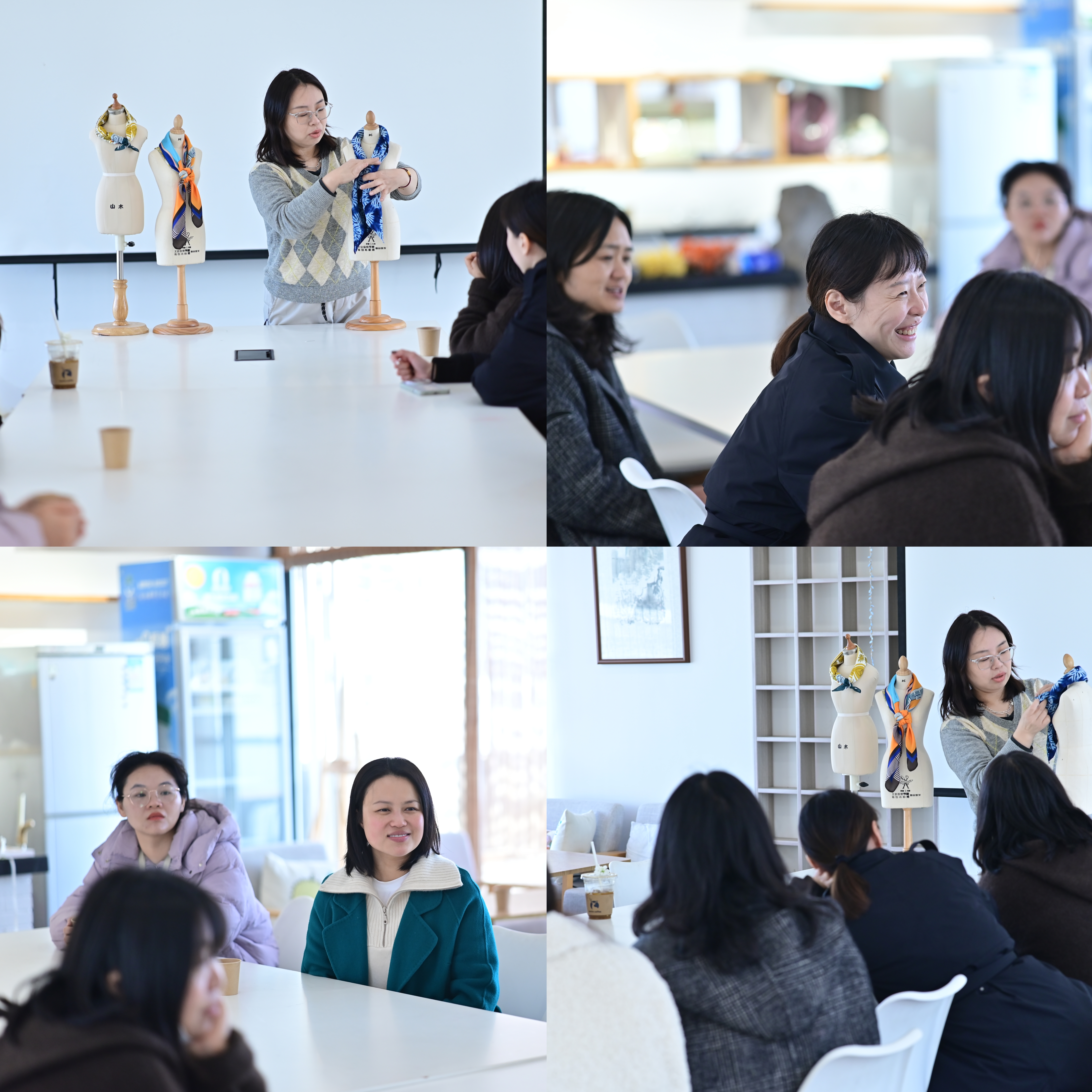 为提升女教职工的审美情趣与日常穿搭质感,学院精心举办丝巾搭配沙龙活动,现场氛围感十足。本次沙龙特别邀请服装专业教师进行专业指导,老师从丝巾的材质挑选、色彩搭配原则,到不同场景的穿搭技巧展开细致讲解,还通过现场示范与手把手教学的方式,带领大家沉浸式学习多种经典与创意丝巾系法。一方小小丝巾,勾勒万般风情,简单的搭配技巧便让整体造型焕发光彩,尽显从容优雅与精致格调,也让大家在平凡日常中收获更多生活仪式感与设计美感。