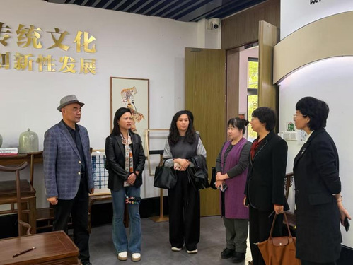 设计学院一行首站到访浙江经济职业技术学院文化创意学院,重点听取该院文化产业经营与管理专业党支部“全国党建工作样板支部”培育创建经验分享。设计学院党委负责人表示,该院以非遗技艺传承为特色抓手,将非遗专业资源转化为育人资源与社会服务资源,推动党建与业务深度融合的清晰思路与落地举措,为学院提供了宝贵的实践参考。交流结束后,调研团参观了该院研训中心,实地感受党建与业务融合的育人成果。